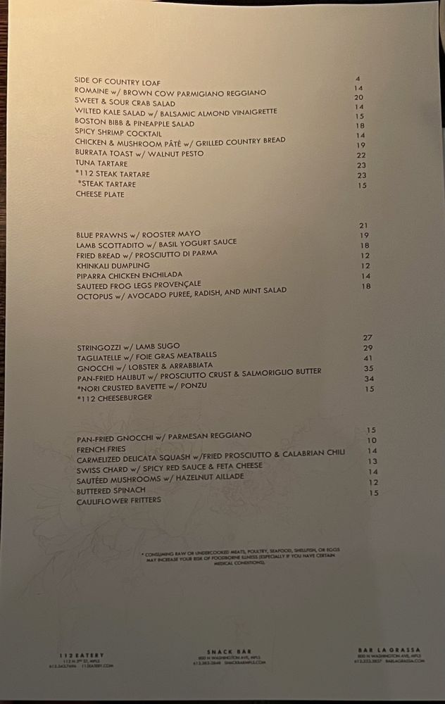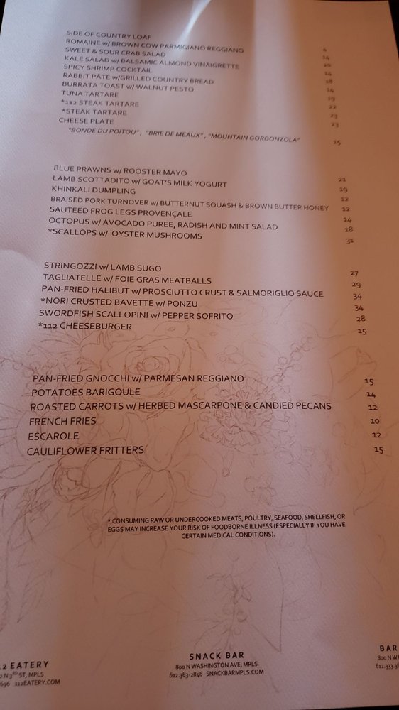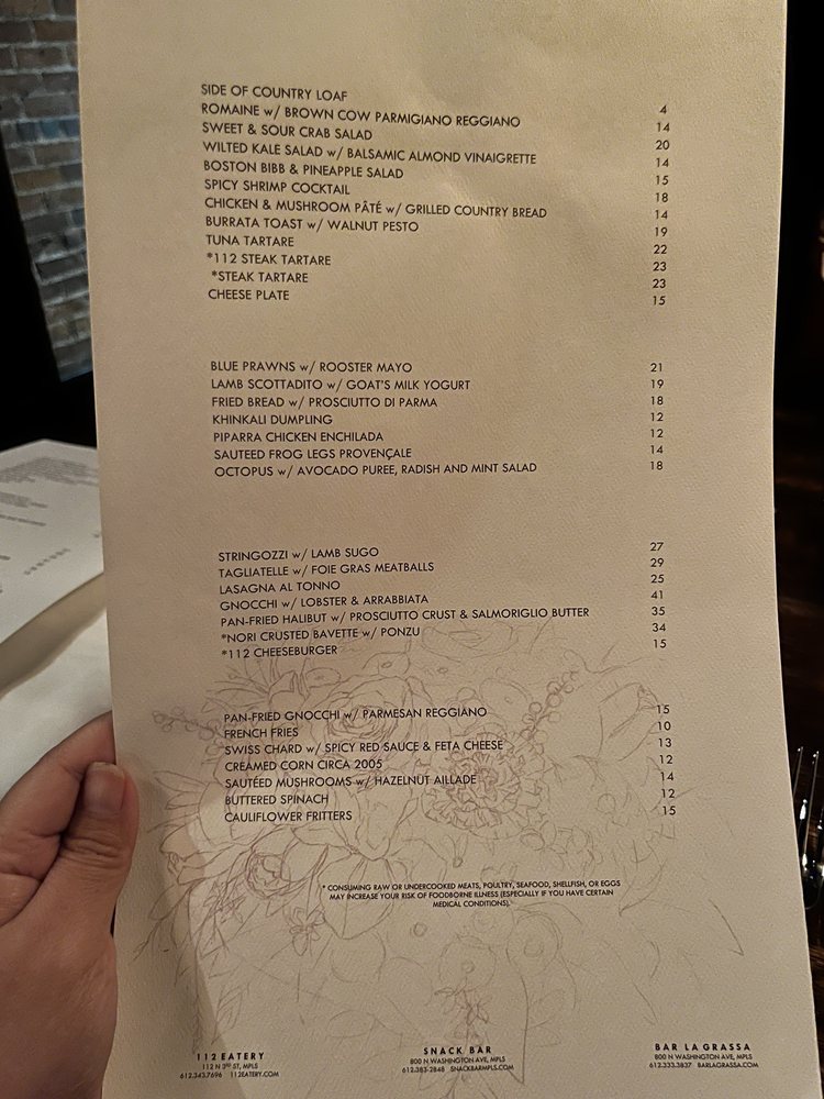 112 Eatery in Minneapolis is a gem for whiskey and wine lovers seeking authentic New American cuisine. Located at 112 N 3rd St, it offers a cozy ambiance with a menu that boasts standout dishes like the 112 Steak Tartare and Nori-Encrusted Bavette. The pasta options like tagliatelle and gnocchi are raved about for their bold flavors and generous portions, especially the lobster gnocchi. The variety of appetizers, from octopus to burrata toast, are equally delicious and pair well with the extensive beer, wine, and cocktail list. The attentive and knowledgeable staff, like Mariana, enhance the dining experience. The attention to detail, including a clear dietary restrictions menu, adds to the overall excellence of 112 Eatery. A must-visit destination for a memorable dining experience in Minneapolis.